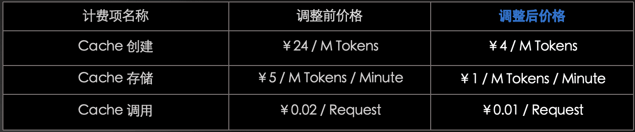 注:kimi-latest 模型自动缓存后的价格仍为 ¥1 / M Tokens。 上下文缓存的价格调整方案如下: