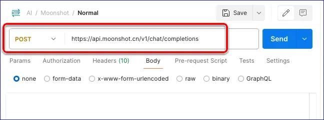 - 新建一个 POST 请求,在地址栏输入 API 地址: