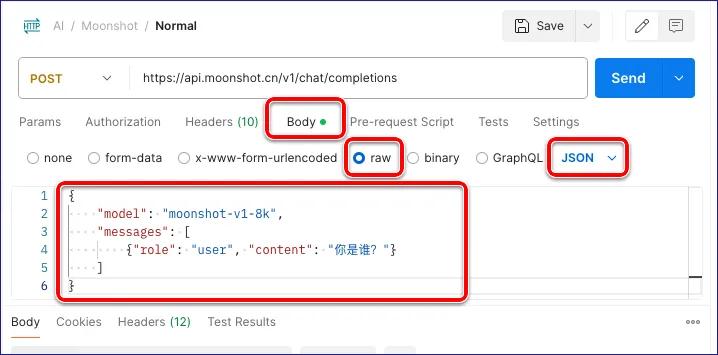 - 最后点击 “Send” 发出请求。稍等几秒钟,我们应该能看到 Kimi 的回答了。